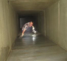 3.在人工無法進(jìn)入而且拆卸較為困難的油煙管道,可以使用開孔的方法,在油煙管道上面鑿一些小孔,通過小孔對(duì)管道內(nèi)里進(jìn)行清洗,然后對(duì)每個(gè)小孔進(jìn)行密封處理。